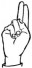 На ћирилици написано ВУКОСАВ УГРИНА састоји се из 13 слова [?]. Исписано ћириличном једноручном азбуком за глувонеме: